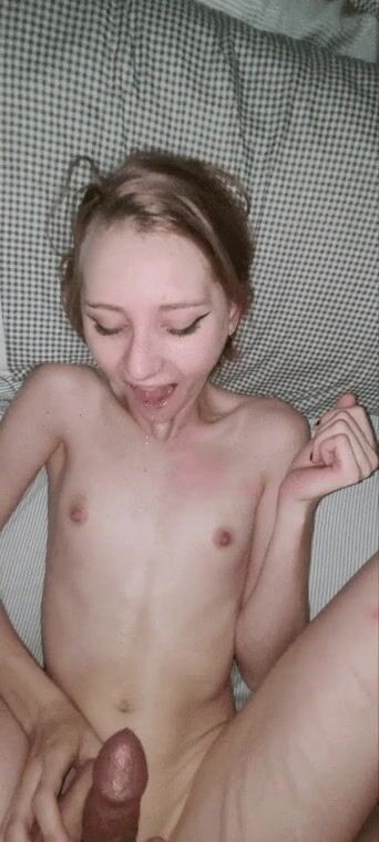 Cumming on her tits, face, and hair